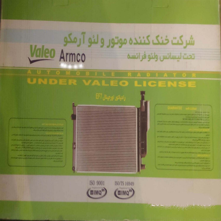 این رادیاتور اورجینال است و جهت نصب بر روی خودروهای سمند EF7 بنزینی تولید شده است . برند ولئو آرمکو تحت لیسانس ولئو فرانسه تولید می شود . اولین وتنها دارنده تاییدیه از کمپانی های پژو ورنو فرانسه می باشد